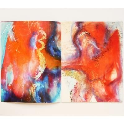 赤と青の色彩が、膨張し、探し求めます。それは、形を奥深くから呼び起こすようです。そして浮かび上がる、色の群れ、ねじれた形。手で擦り付けられ、明るい汚れのような顔料は、輝き、光のように、光輪を与えます。これは、職人技のような明白な深さがあります。